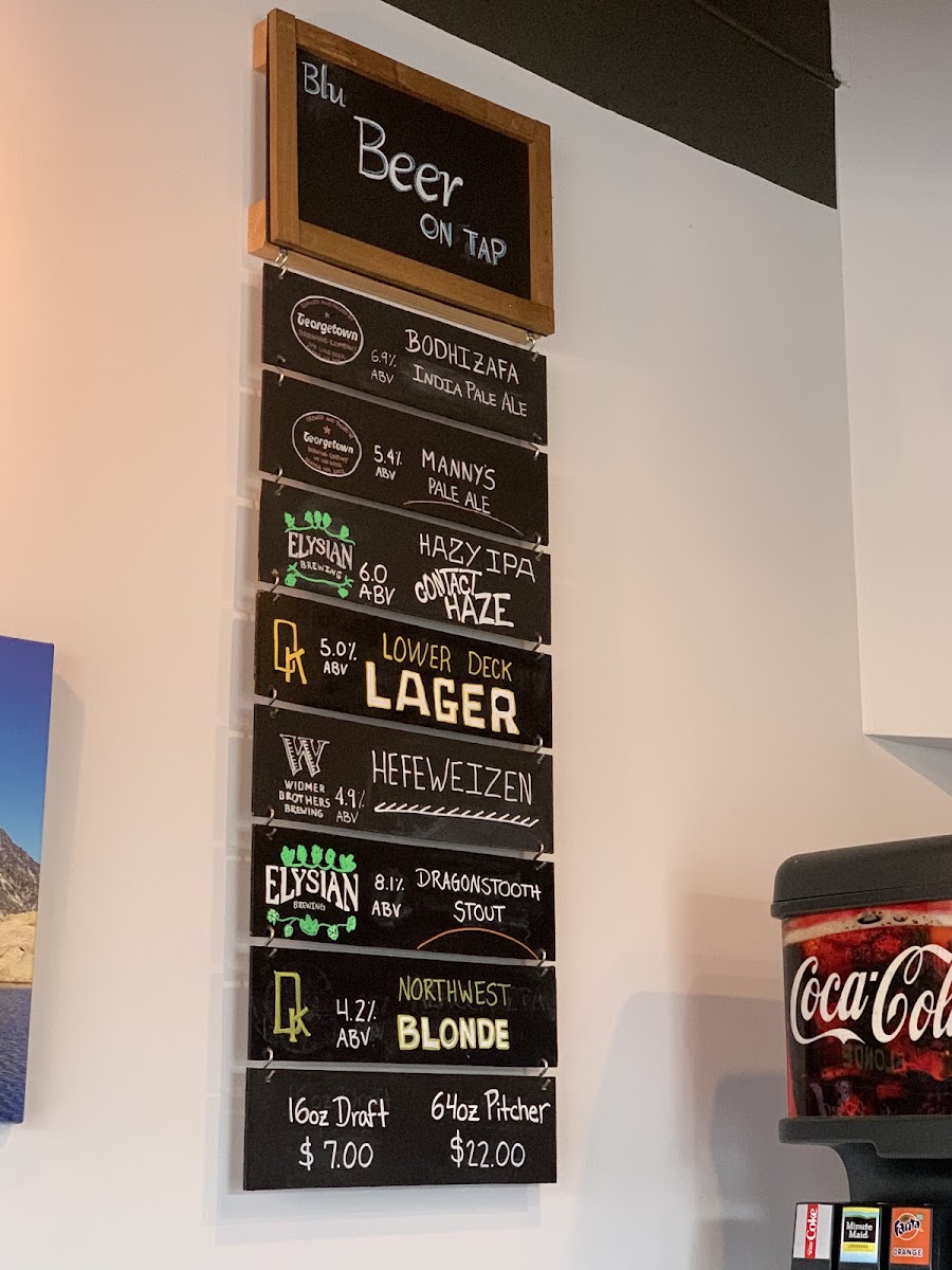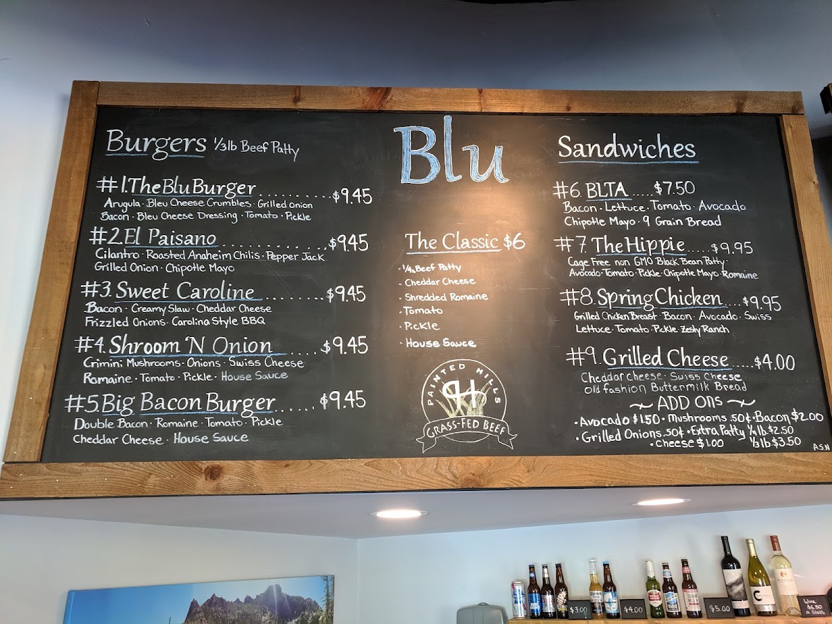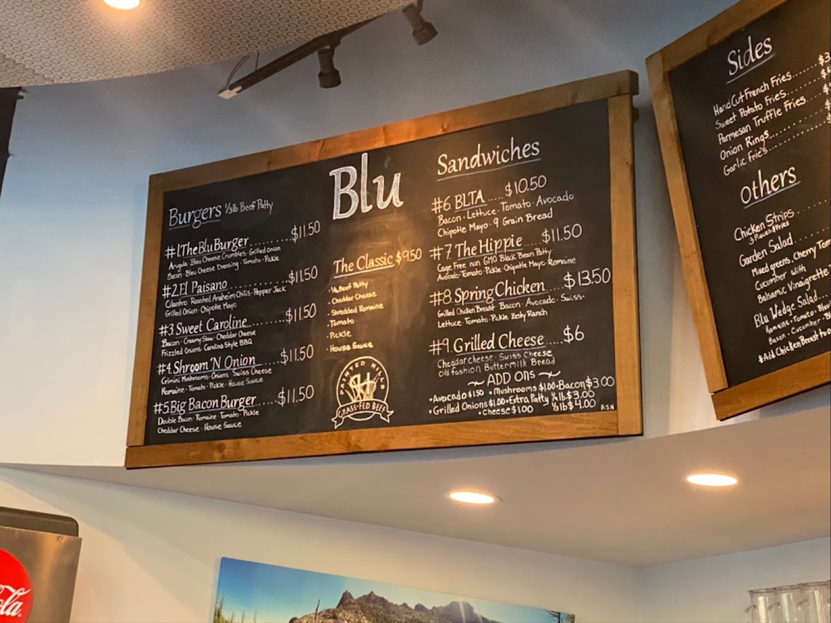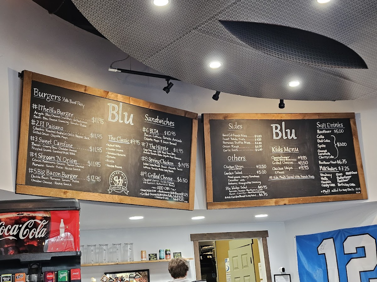 Blu Burgers & Brew offers a delicious variety of comfort food with a focus on burgers and sandwiches. For burger lovers, the menu features options like the Classic burger, the signature Blu Burger, the bold El Pasano, and the sweet and savory Sweet Caroline. If you're in the mood for something with a bit more flair, try the Shroom N’ Onion for a tasty combination of mushrooms and onions. The sandwich selection includes the crispy BLTA and the gooey Grilled Cheese. The kids’ menu is perfect for little appetites, offering a Kids Cheeseburger, Kids Chicken Strips, and Kids Grilled Cheese. For sides, Blu Burgers & Brew delivers options like Hand-Cut French Fries, Parmesan Truffle French Fries, Sweet Potato Fries, Onion Rings, and Garlic Fries. To wash it all down, treat yourself to a classic milkshake, with flavors such as Strawberry, Vanilla, Chocolate, Oreo, or Mint Oreo. And for a refreshing drink, you can enjoy a cold Lemonade. With a menu that covers all the bases of a great American eatery, Blu Burgers & Brew is sure to satisfy every craving.